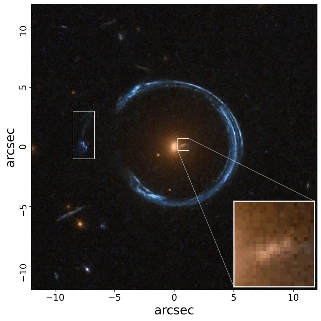 Acest gigant se află în centrul unei structuri astronomice la fel de spectaculoase: galaxia supranumită Potcoava Cosmică. Numele evocator ascunde un fenomen real: masa colosală a galaxiei distorsionează țesătura spațiu-timp, creând un efect de lentilă gravitațională. Această deformare acționează ca o lupă cosmică uriașă, amplificând și curbând lumina unei galaxii aflate mult mai departe. Rezultatul este un inel luminos în formă de potcoavă — imaginea care a inspirat porecla sistemului.