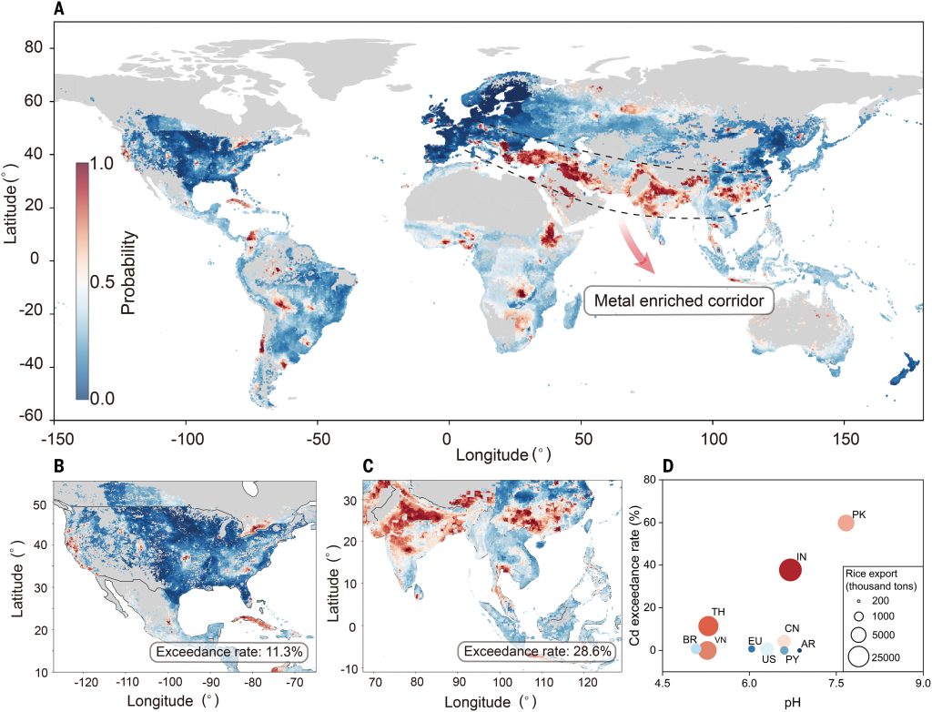 Cercetătorii de la Universitatea Tsinghua din Beijing, China, au analizat date din 1.493 de studii efectuate pe probe de sol din straturile superioare ale lumii. Obiectivul? Cartografierea gradului de poluare a solului cu metale grele. Oamenii de știință au folosit, de asemenea, un model de învățare automată pentru a lua în considerare diverse condiții climatice, topografice și socioeconomice. Documentul arată că 14 până la 17% din solurile agricole globale conțin cel puțin un metal care depășește limitele minime pentru o agricultură sănătoasă. Cel mai predominant metal este cadmiul, care este utilizat în principal ca strat anticoroziv pentru alte metale, cum ar fi oțelul. În plus, nu mai puțin de 6,8% din suprafața Pământului are cel puțin un metal care depășește limitele inferioare pentru sănătatea umană sau pentru mediu. Potrivit autorilor studiului, între 900 de milioane și 1,4 miliarde de oameni trăiesc în regiuni expuse riscului de contaminare toxică cu metale grele. În plus, regiunile lumii cele mai expuse riscului sunt nordul Indiei, sudul Chinei și Orientul Mijlociu. Totuși, harta elaborată de cercetători arată prezența unui „coridor puternic contaminat cu metale” (vezi mai jos) care se întinde din sudul Chinei până în Europa, aceasta din urmă fiind vizibil afectată în nordul Italiei, Balcani, Grecia și Turcia.