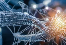 Oamenii de știință au folosit apoi datele recoltate pentru a crea o imagine tridimensională a punții intercelulare, regiunea unde o celulă se desparte în alte două identice. Imaginea rezultată a permis observarea structurii interne a celulei, care conține micro-tuburi (roșii), dar a evidențiat și existența, necunoscută până atunci, a unor filamente (verzi) care marchează regiunea unde se manifestă diviziunea.
