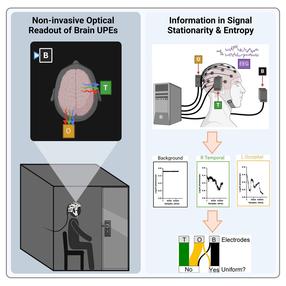 Ceea ce cercetătorii au vrut în special să verifice a fost dacă aceste EPU-uri erau legate de activitatea cerebrală. Iar rezultatele au fost uimitoare. În experimentele de laborator, participanții au purtat o cască EEG (electroencefalogramă) combinată cu detectoare optice ultrasensibile. În întuneric total, li s-a cerut să asculte muzică sau să îndeplinească sarcini mentale cu ochii deschiși sau închiși. Rezultatul: nivelurile de lumină au variat în funcție de activitatea cerebrală, iar aceste variații au corespuns datelor electrice înregistrate de EEG. Mai mult, semnalele luminoase aveau frecvențe specifice, diferite de cele ale luminii ambientale de fundal. Această corelație stă la baza unei noi metode de imagistică cerebrală pe care cercetătorii o numesc fotoencefalografie.