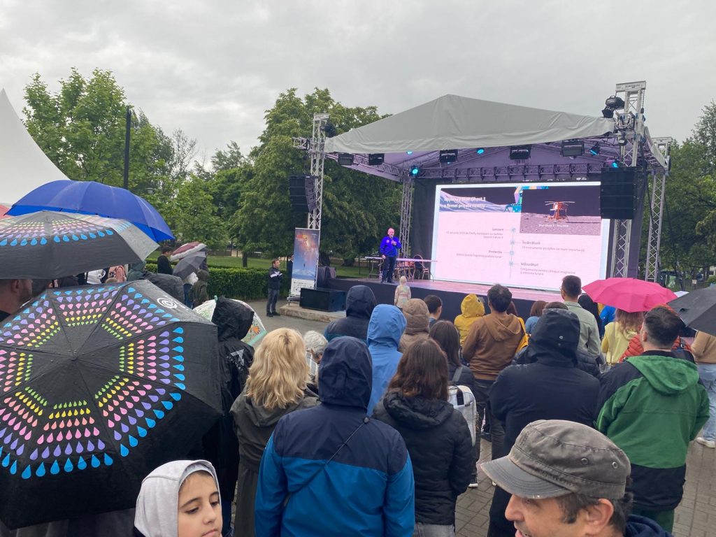 Stiti cat de fain e sa ai conferinta de popularizare a stiintei in aer liber si oamenii din public sa stea pititi sub umbrele si pelerine de ploaie? Asta inseamna pasiune… Probabil ca in acelasi timp mall-urile erau pline 🙂