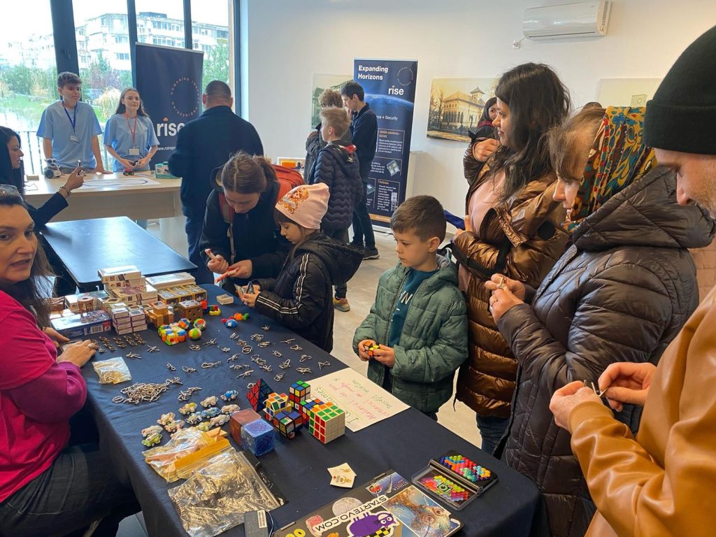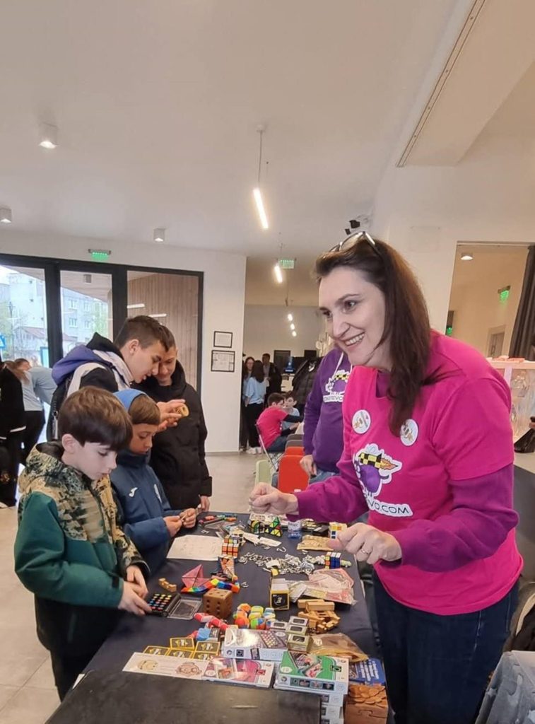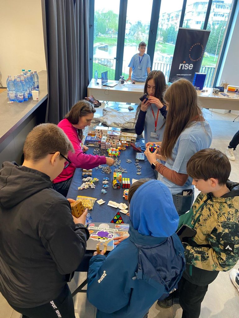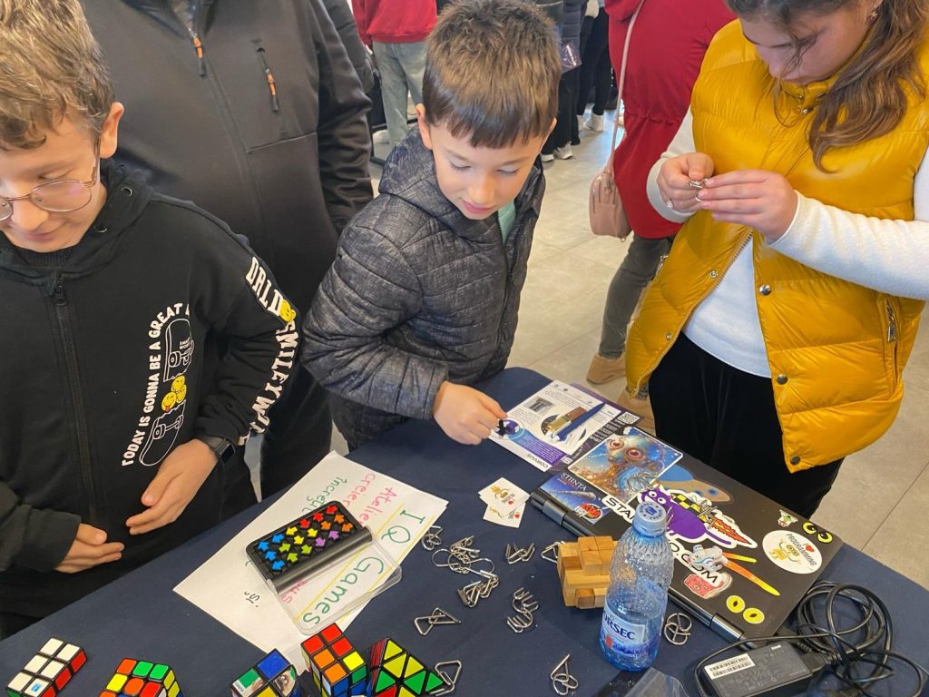 Noi, la Asociatia StartEvo, am fost 3 oameni. Cel mai mic, de clasa a VIII-a, expert in Tinkercad, a invatat participantii cum sa proiecteze 3D diverse obiecte, care apoi puteau sa fie printate fizic la imprimanta 3D. Restul, jocuri de IQ.