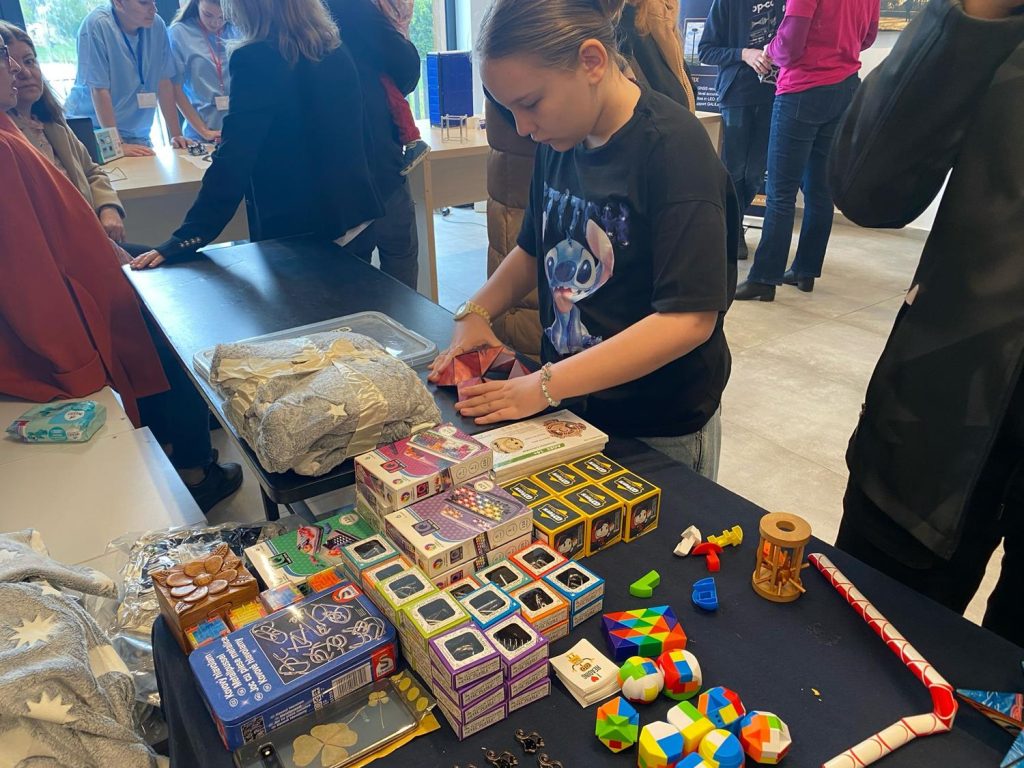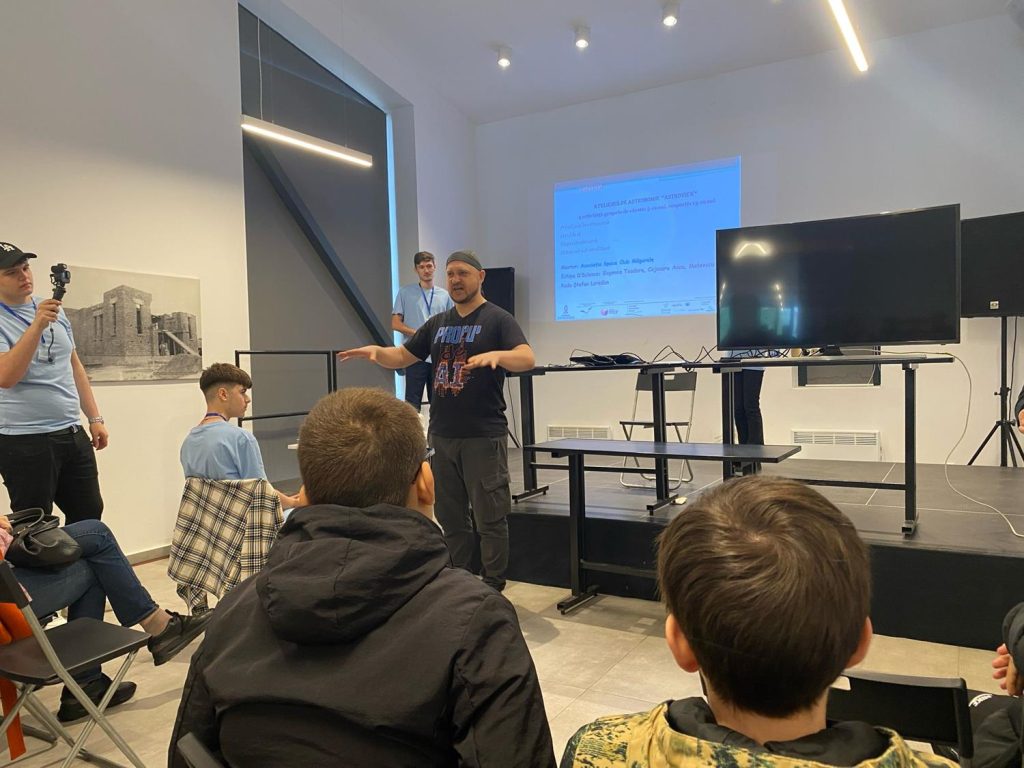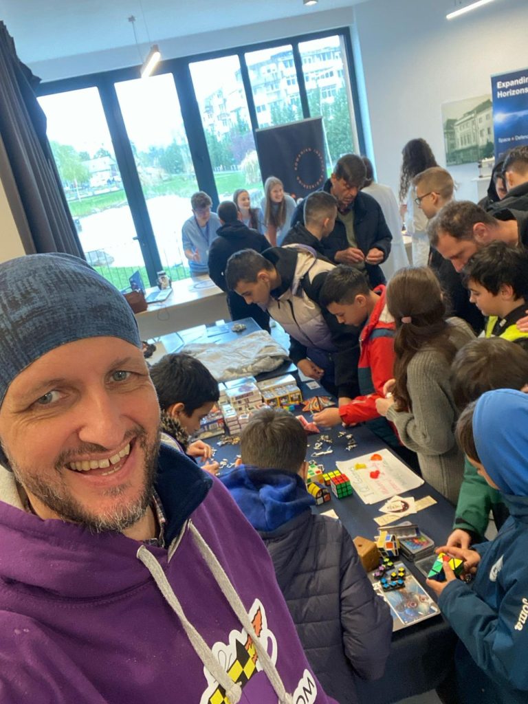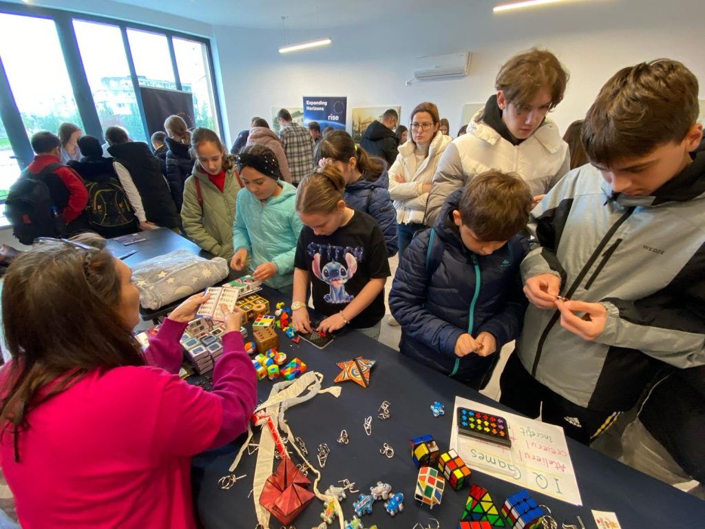 Noi, la Asociatia StartEvo, am fost 3 oameni. Cel mai mic, de clasa a VIII-a, expert in Tinkercad, a invatat participantii cum sa proiecteze 3D diverse obiecte, care apoi puteau sa fie printate fizic la imprimanta 3D. Restul, jocuri de IQ.