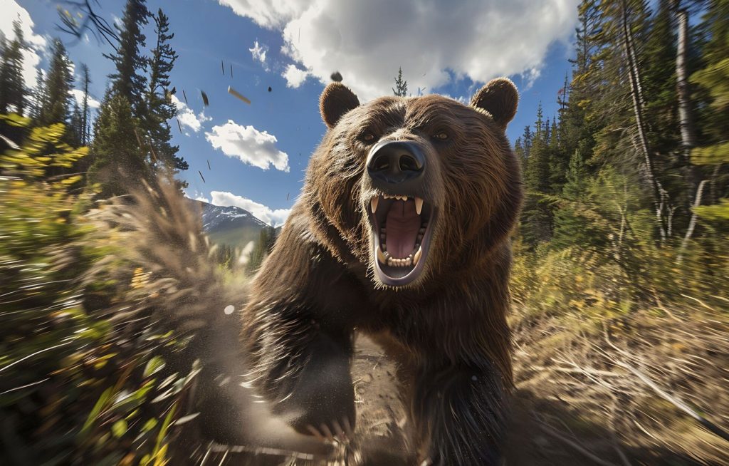 Mergi prin natura si vezi o chestie mare, pufoasa, cu ochi draguti, colti de 8 cm, bale la gura, gheare, care mormaie si vine in fuga catre tine. Creierul tau va analiza situatia si va lua o decizie rapida (sper), care sa iti maximizeze sansele de supravietuire.