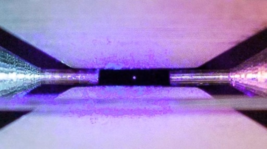 Atomii sunt compuși dintr-un nucleu, format din protoni și neutroni, și din electroni care se rotesc în jurul nucleului. Reamintim că protonii au o sarcină pozitivă, electronii au o sarcină negativă, iar neutronii nu au nicio sarcină. Acești atomi sunt clasificați în funcție de numărul lor de protoni, care determină elementul lor chimic. Există peste o sută de elemente chimice diferite, de la hidrogen, cel mai simplu, la oganesson, cel mai complex. Aceste elemente se pot combina apoi pentru a forma molecule. Cu alte cuvinte, atomii sunt unitățile de bază ale materiei. Ei alcătuiesc tot ceea ce putem vedea, de la aerul pe care îl respirăm la cele mai mari galaxii din univers. Prin urmare, studiul lor este esențial. Totuși, această activitate este deosebit de delicată, deoarece atomii sunt incredibil de mici, având doar câteva zecimi de nanometru în diametru (un nanometru este echivalent cu o miliardime de metru). Fizicienii folosesc câmpuri electromagnetice pentru a-i manipula. Cu toate acestea, multă vreme cercetătorii le-au analizat „la pachet”, de unde și interesul acestei fotografii incredibile a fizicianului David Nadlinger, realizată în cadrul cercetărilor sale în domeniul fizicii cuantice la Universitatea Oxford. Fotografia prezintă un singur atom de stronțiu.