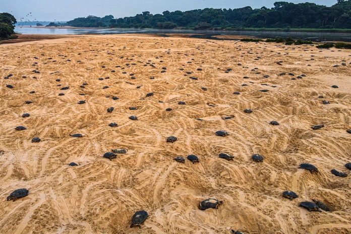 În fiecare an, între iulie și august, plajele nisipoase ale râului Guaporé – granița naturală dintre Brazilia și Bolivia – găzduiesc un spectacol natural impresionant: depunerea în masă a ouălor de către țestoasa gigant sud-americană (Podocnemis expansa). Femelele ies din apă în număr uriaș pentru a-și îngropa ouăle în nisipul cald. Dacă odinioară asemenea adunări erau frecvente, ele au devenit tot mai rare în ultimele decenii, din cauza pescuitului excesiv, colectării ilegale de ouă și degradării habitatului.