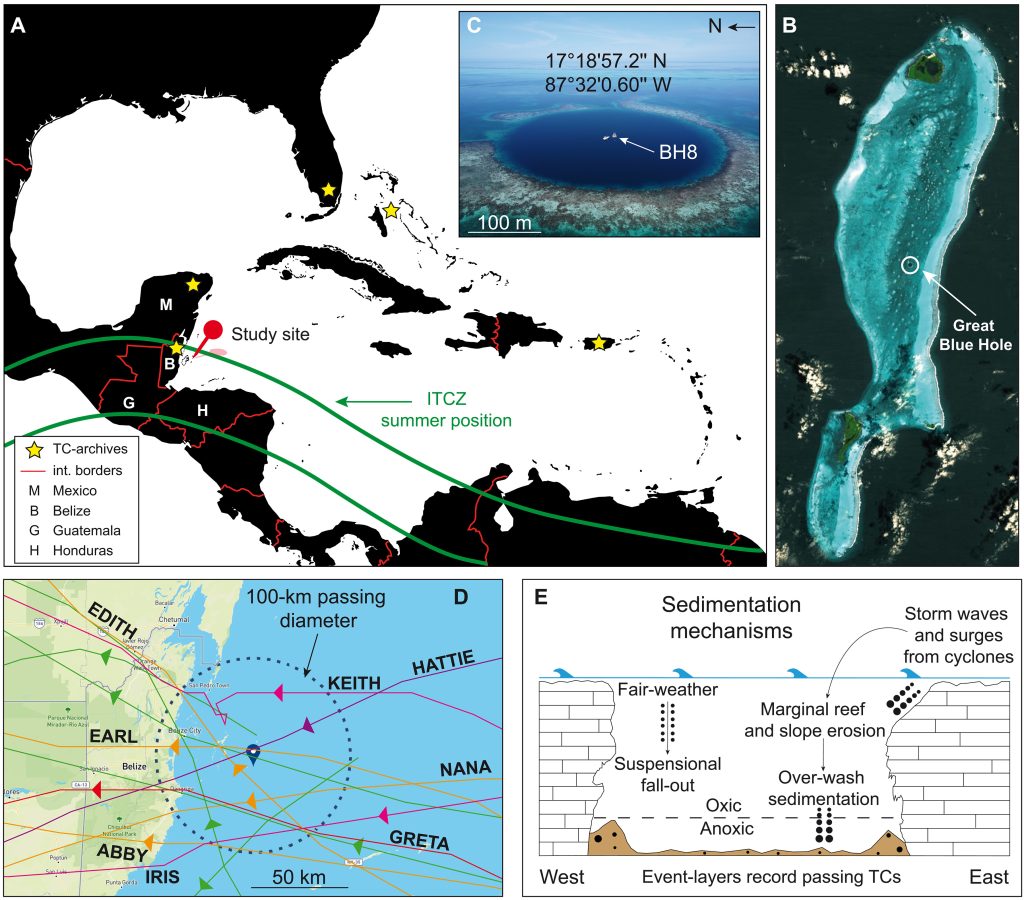 Oamenii de știință au extras un miez de sediment de 30 de metri lungime din adâncurile Marii Găuri Albastre, situată la aproximativ 80 de kilometri de coasta Belizei. Acest foraj le-a permis să analizeze urmele lăsate de cicloanele tropicale pe o perioadă de 5.700 de ani, oferind astfel un record climatic remarcabil de precis. La fel ca inelele copacilor, straturile de sedimente înregistrează furtunile trecute, permițând cercetătorilor să evalueze frecvența și intensitatea acestora în timp.