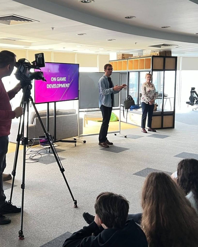 O clasă de a 11-a de elevi de la Colegiul National de Informatica “Tudor Vianu” – CNITV Oficial, însoțiți de doamna profesoară Corina Elena Vinț, a fost invitată să descopere și să își dea seama dacă o carieră în game development ar fi cea mai bună soluție pentru ei.