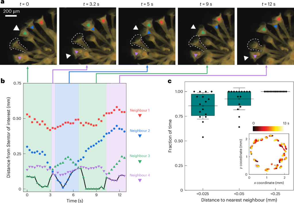Evoluția vieții multicelulare, această tranziție fascinantă de la organisme unicelulare la forme de viață mai complexe, a fost mult timp un mister pentru oamenii de știință. Cum ar putea organismele independente, care trăiesc singure și se hrănesc singure, să se unească pentru a forma entități multicelulare? Este posibil ca o echipă de cercetători de la Laboratorul de Biologie Marină (MBL) să fi găsit o piesă lipsă din acest puzzle. Studiul lor recent al comportamentului de hrănire al Stentorilor, organisme unicelulare, sugerează că dinamica fluidelor, care promovează hrănirea cooperantă, ar fi putut fi un motor cheie al evoluției către forme de viață mai complexe. Stentorii sunt organisme unicelulare gigantice, în formă de trompetă, care trăiesc în principal în iazuri și lacuri. Aceste organisme se hrănesc prin crearea unor vârtejuri de apă cu cili în jurul gurii, ceea ce le permite să sugă prada mică, cum ar fi bacteriile. Ceea ce face ca studierea acestor creaturi să fie deosebit de interesantă este capacitatea lor de a forma colonii, dar numai temporar. Într-un laborator, Stentors au format rapid grupuri nu prin alipirea unul de celălalt, ci stând unul lângă altul, cu capetele lor trâmbițe legănându-se împreună, uneori la distanță.