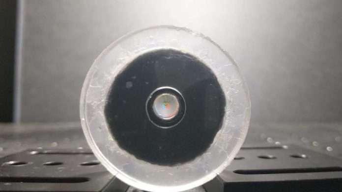 Cercetătorii au fabricat un inel de hidrogel în jurul unei lentile din polimer siliconic, plasând designul asemănător unui ochi într-un cadru mai mare. Structura mecanică este similară cu configurația ochiului uman, a explicat Zheng.