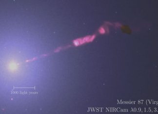 Folosind camera pentru infraroșu a Telescopului Spațial James Webb, oamenii de știință au capturat imagini impresionante ale unui jet uriaș care este expulzat din...