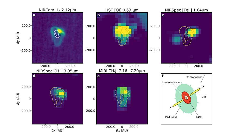 Gândiți-vă la atomi precum cărămizile Lego: fiecare bloc mic se combină pentru a crea un bloc mai complex, de la molecule la enzime la ADN. Pentru prima dată, astronomii au detectat o moleculă care joacă un rol crucial în acest proces: molecula de cation metil (CH3+). Cationul metil este un ion pozitiv compus dintr-un atom de carbon (C) și trei atomi de hidrogen (H). Este, de asemenea, un radical liber, ceea ce înseamnă că conține un electron nepereche. Datorită acestei caracteristici, această moleculă este foarte reactivă și poate fi implicată în diferite reacții chimice. Ea este capabilă să se lege cu un număr mare de molecule organice pentru a forma altele mai complexe. În acest sens, cationul metil a fost mult timp considerat „piatra de temelie” a chimiei interstelare. Până acum, niciun telescop nu a fost capabil să-l detecteze în spațiu. Acest lucru este acum posibil datorită telescopului spațial James Webb. El poate detecta de fapt semnăturile unor molecule specifice, numite și linii de emisie moleculară, cu mare precizie. “Am detectat un semnal misterios la începutul observațiilor noastre ale acestei nebuloase cu spectrometrul MIRI. Ne-a luat câteva săptămâni să înțelegem că este faimosul cation metil pe care toată lumea îl caută încă din anii 1970”, a declarat Olivier Berné, astrofizician la Institutul de Cercetare în Astrofizică și Planetologie Toulouse, pentru revista Science & Avenir. Această moleculă mult căutată a fost izolată de pe un disc protoplanetar numit d203-506. Este un sistem solar în curs de dezvoltare situat în Nebuloasa Orion, la aproximativ 1.300 de ani lumină de Pământ.